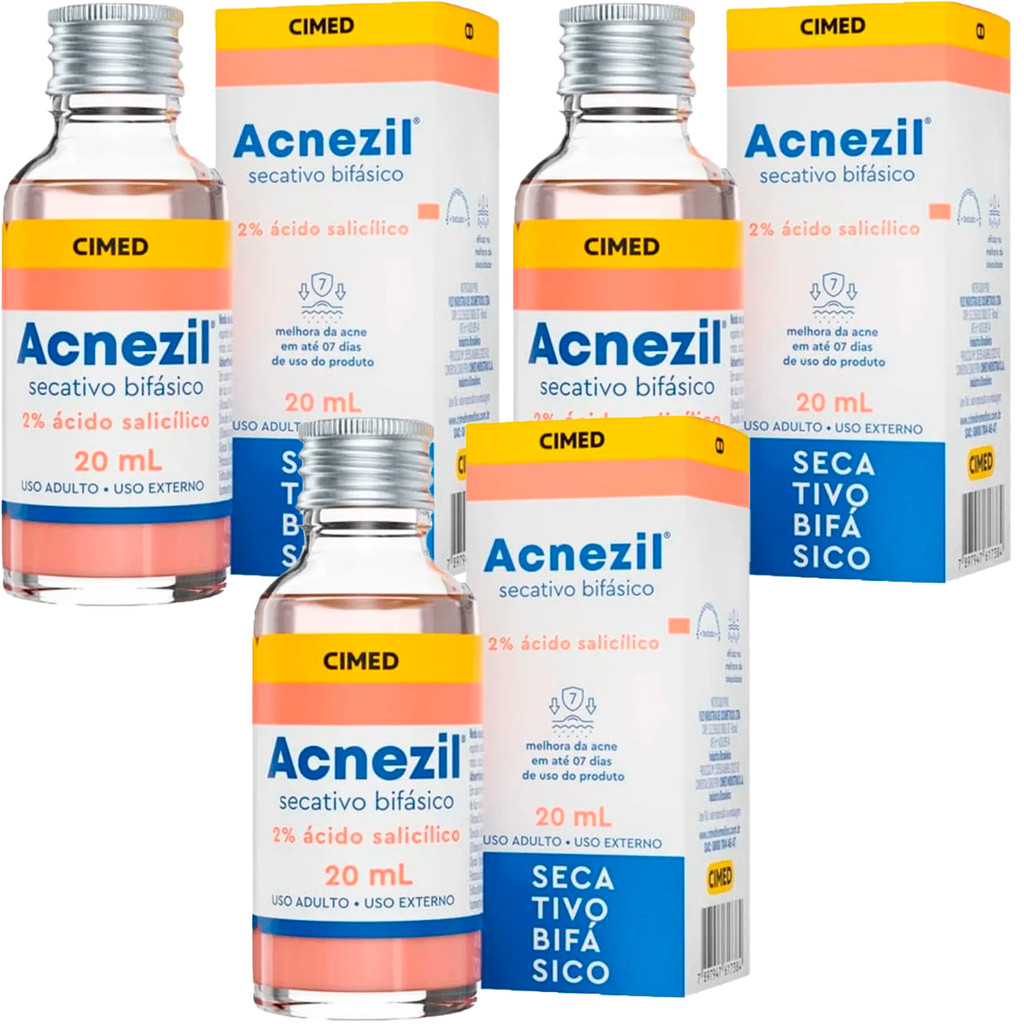 A solução eficaz para tratar acne e espinhas! Acnezil Secativo Bifásico da Cimed é um tratamento potente com ação secativa e anti-inflamatória, perfeito para combater as imperfeições da pele.