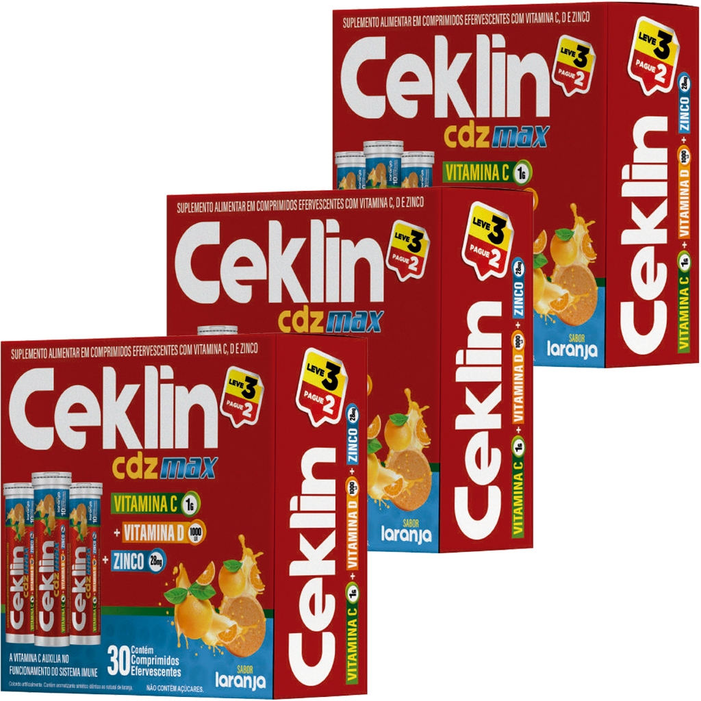 Ceklin Vitamina C + D + Zinco é um suplemento em comprimidos efervescentes desenvolvido para fortalecer a imunidade e promover o bem-estar diário. Cada comprimido contém 1g de vitamina C, vitamina D e zinco, nutrientes essenciais que atuam na proteção do organismo, na saúde dos ossos e na prevenção de gripes e resfriados. Com sabor agradável e fácil dissolução, é uma opção prática para quem busca reforçar a saúde com eficiência. Embalagem com 30 comprimidos, ideal para um mês de uso.