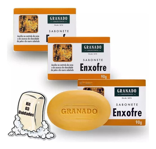 O Sabonete Enxofre Granado tem base vegetal e é produzido sem gordura animal. Hipoalergênico, formulado de maneira a minimizar o possível surgimento de alergias. Sua fórmula suave é indicada para peles sensíveis. Auxilia no controle da acne e do excesso de oleosidade da pele e do couro cabelo.