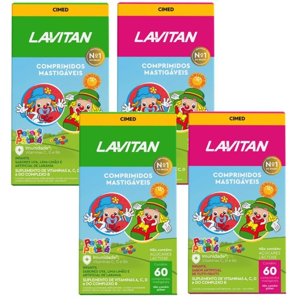 Kit 4 Lavitan Patati Patata Vitamina Infantil Sabor Tutti-frutti + Mix de Sabores Cimed c/60 Comprimidos