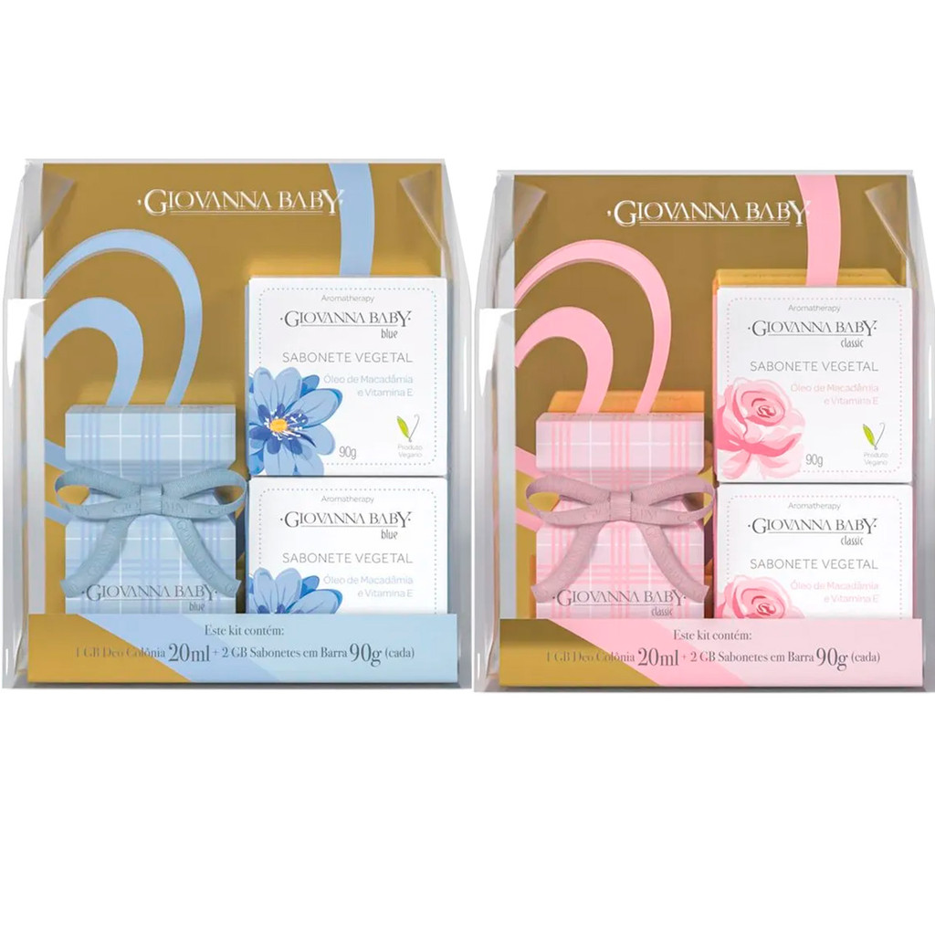O Kit Giovanna Baby - Colônia e Sabonetes nas versões Blue e Classic é ideal para quem aprecia fragrâncias suaves e cuidados delicados com a pele. Cada kit inclui uma deo colônia de 20ml e dois sabonetes em barra de 90g, proporcionando uma experiência completa de frescor e bem-estar. A versão Blue oferece uma fragrância leve e sofisticada, com notas refrescantes que transmitem sensação de limpeza e suavidade. Já a versão Classic traz o aroma tradicional da linha Giovanna Baby, com toque suave e acolhedor, perfeito para o uso diário. Os sabonetes limpam gentilmente, deixando a pele macia e perfumada, enquanto a colônia complementa o cuidado com uma fragrância duradoura e agradável.