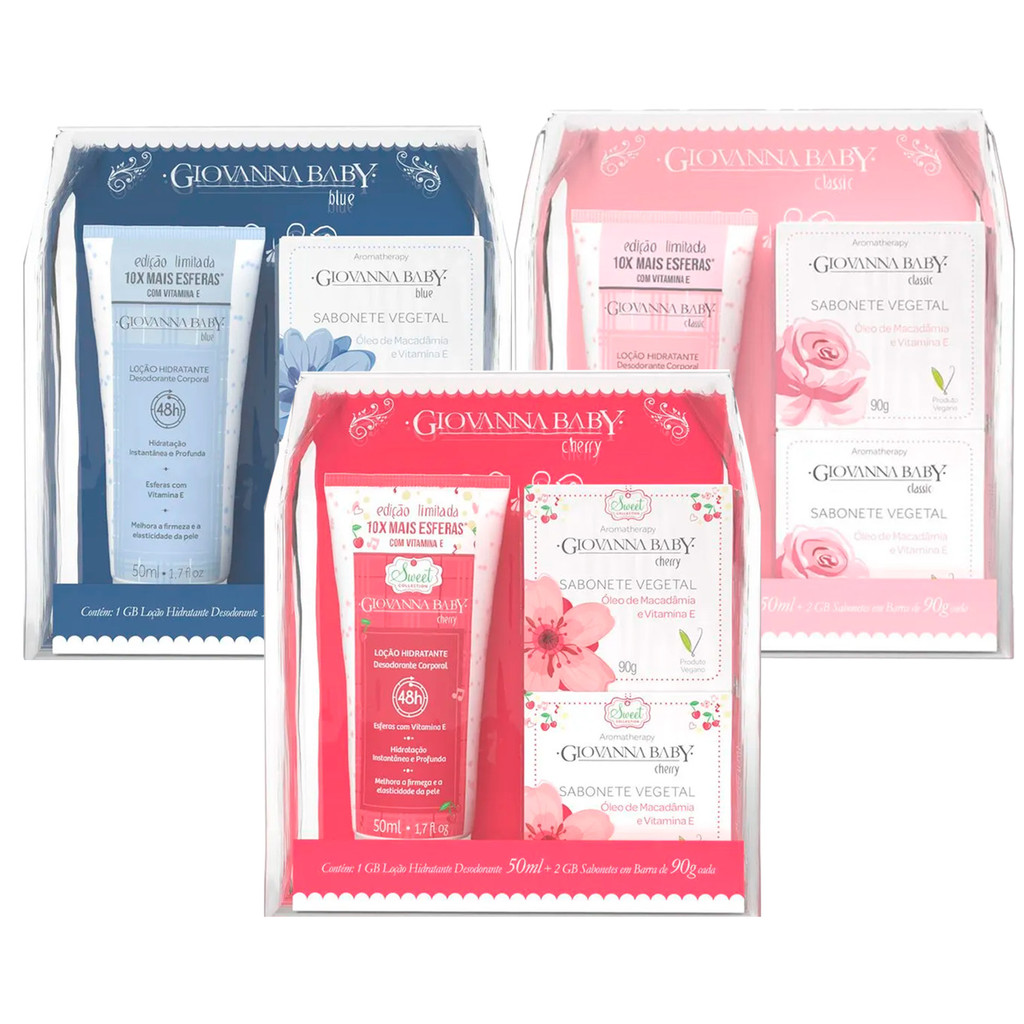 O Kit Giovanna Baby Eterno Encanto é uma seleção especial que reúne três sabonetes em barra de 90g nas fragrâncias Blue, Classic e Cherry, proporcionando uma experiência única de cuidado e perfumação. O sabonete Blue oferece uma fragrância fresca e sofisticada, ideal para quem busca leveza e suavidade. O Classic traz o aroma tradicional e acolhedor da linha Giovanna Baby, perfeito para o uso diário. Já o Cherry apresenta uma fragrância delicadamente adocicada e envolvente, que desperta sensações de ternura e charme. Juntos, esses sabonetes transformam o momento do banho em um ritual de bem-estar e encantamento.