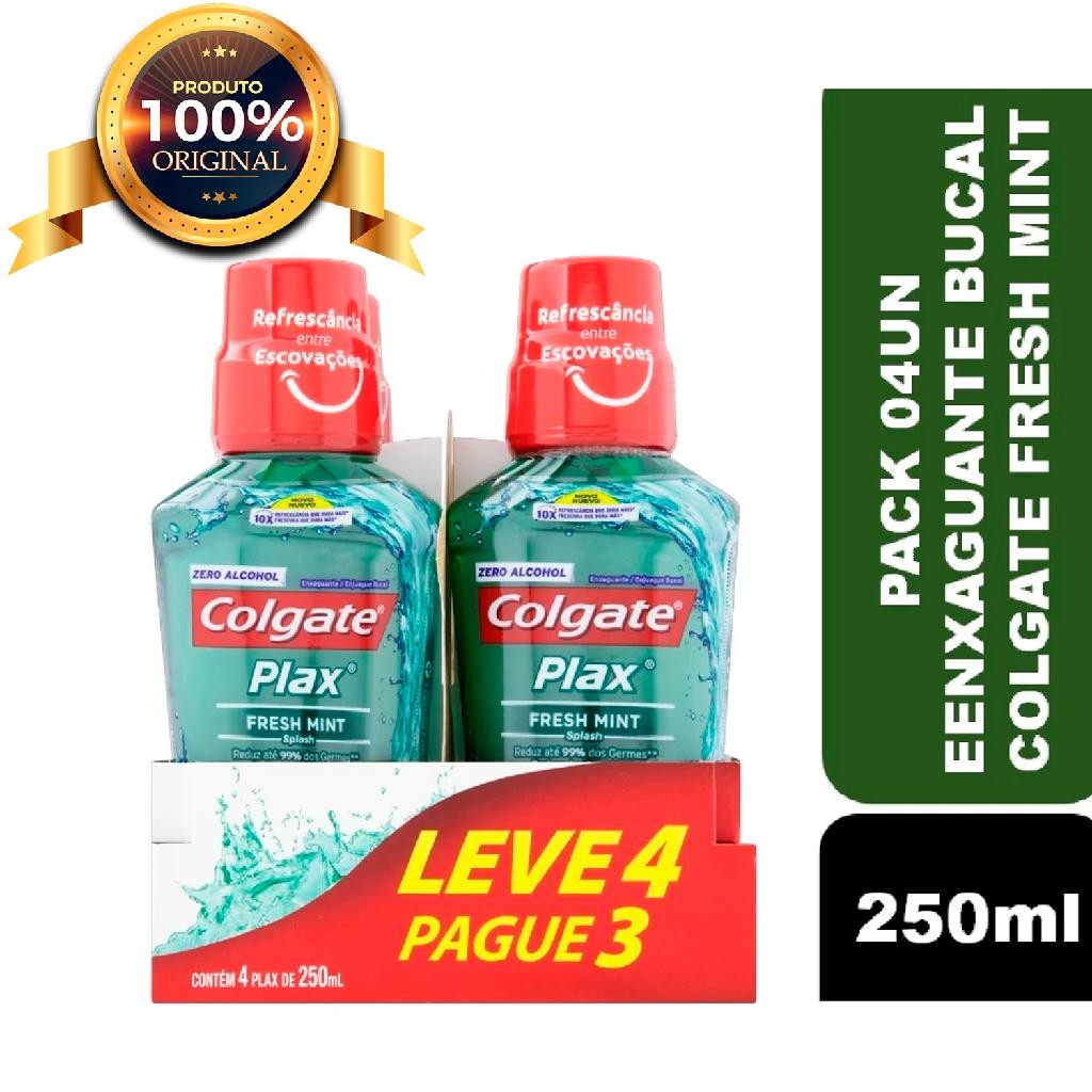Kit Pack com 04 un Enxaguante Bucal Colgate Plax Fresh Mint 250ml