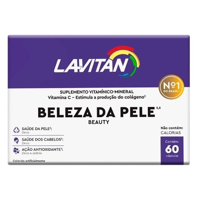 O suplemento Lavitan Mais Beauty é um polivitamínico desenvolvido especialmente para as mulheres. Ele estimula a produção de colágeno, promovendo mais firmeza e elasticidade à pele. E ainda melhora o aspecto dos cabelos e das unhas. Caixa com 60 Capsulas (Consumir 1 Capsula ao dia) Sua fórmula é enriquecida com nutrientes que promovem um incrível efeito rejuvenescedor. Conheça os ativos: Colágeno Contribui para a elasticidade e firmeza da pele. Selênio Participa na formação de enzimas que possuem ação antioxidante. Além disso, melhora a utilização da vitamina E, auxiliando no processo antienvelhecimento. Outro fator importante é a melhoria no sistema imunológico e na prevenção de doenças cardiovasculares Vitamina E A vitamina E tem como função principal e mais conhecida a ação antioxidante. Ela é importante no retardo do envelhecimento e até mesmo na prevenção de doenças. Vitamina A Atua no crescimento, visão, formação dos dentes, colágeno e na renovação celular. Antioxidante, ajuda a combater a acne, úlceras, periodontite e melhora a imunidade Vitamina C Reforça o sistema imunológico, fortalece os vasos sanguíneos e combate o envelhecimento da pele Zinco Participa da síntese proteica e do metabolismo de carboidratos e lipídios As cápsulas promovem ação antioxidante, manutenção das unhas e cuidam da saúde da pele. Uma única porção contém a dose diária recomendada dos nutrientes. NÃO CONTÉM GLÚTEN ZERO CALORIAS Contém 60 comprimidos. ----------------------------------------------------------------------------------- Pedidos sempre postados de 2ª a 6ª para maior agilidade na entrega de seu produto Produtos 100 % originais, embalagem discreta e segura PERGUNTAS FREQUENTES - QUANTO TEMPO APÓS A MINHA COMPRA MEU PRODUTO SERÁ ENVIADO? No máximo em 24h de acordo com o dia de seus pedido. - QUAL A DATA DE VALIDADE DOS PRODUTOS? Devido a grande demanda de pedidos, nosso estoque é renovado semanalmente, o que garante aos nossos clientes produtos com o maior prazo de validade possível. Lembrando que alguns produtos, por sua própria composição, possuem validades menores. - COMO É O ENVIO? O envio é realizado pelos Correios ou Transportadora e a coleta é feita de 2ª a 6ª feiras. - É ORIGINAL? Sim, todos os nossos produtos são originais, adquiridos diretamente dos melhores fabricantes e distribuidoras. - E SE EU NÃO RECEBER MEU PRODUTO COMO DEVO PROCEDER? Os pagamentos só serão liberados pela plataforma quando autorizados pelo cliente. Seu dinheiro 100% protegido! - E SE EU QUISER FAZER A DEVOLUÇÃO COMO É FEITO O ESTORNO DO PAGAMENTO? Em casos de arrependimentos, mudanças de ideias ou produtos danificados, a devolução é totalmente gratuita e o reembolso será feito pela plataforma. FICOU COM ALGUMA OUTRA DÚVIDA? CHAME A GENTE NO CHAT, FICAREMOS FELIZES EM LHE ATENDER E RESPONDEREMOS O MAIS BREVE POSSÍVEL :-)