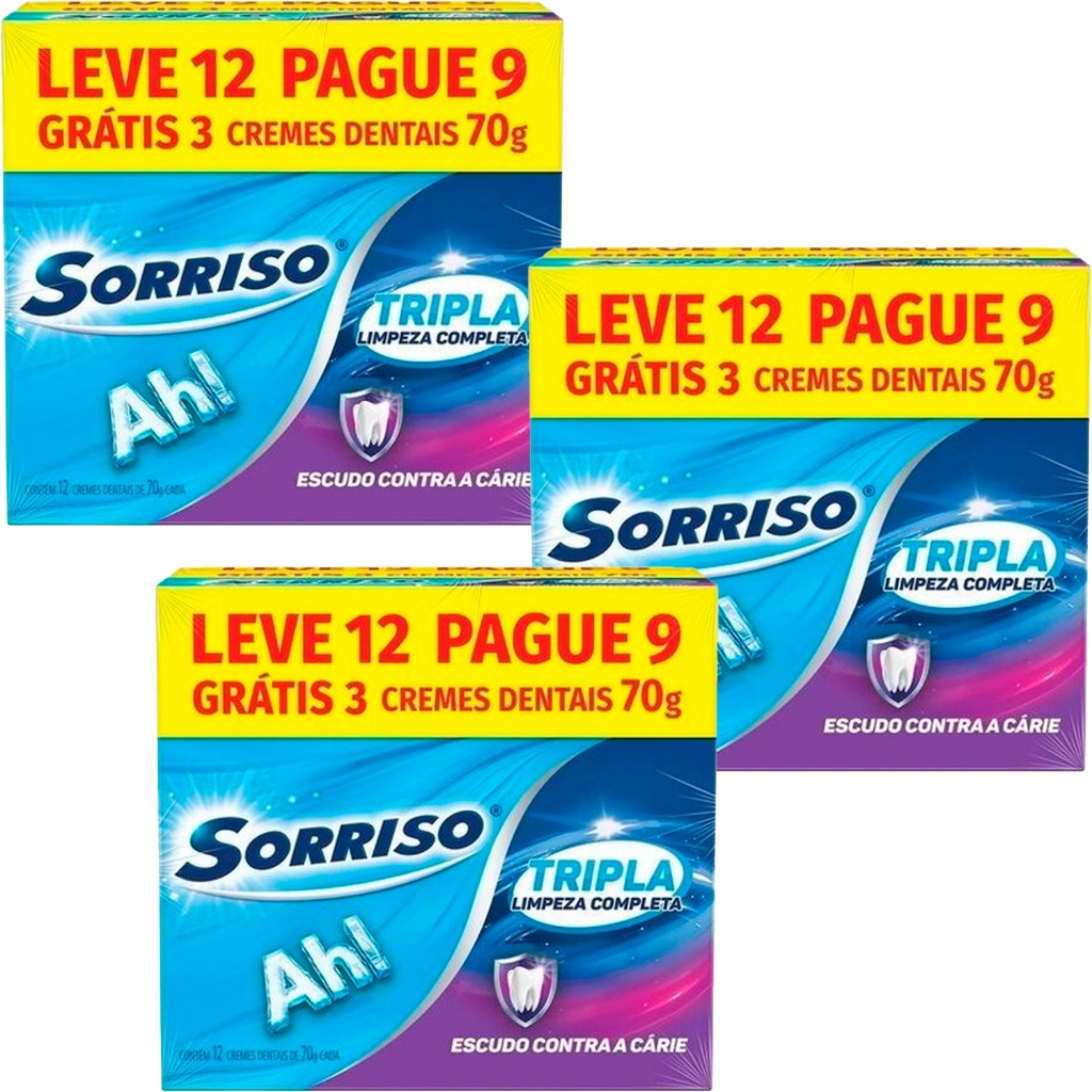 A Pasta de Dentes Sorriso Tripla Limpeza Completa Pacote com 12 unidades é uma opção prática e econômica para quem busca manter a saúde bucal de toda a família com qualidade e eficiência. Cada unidade contém 70g de creme dental, totalizando 840g no pacote.
