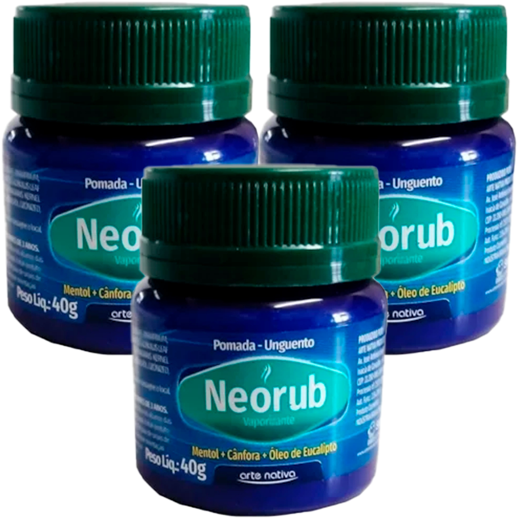 A Pomada Neorub da Arte Nativa é um unguento de uso tópico desenvolvido para proporcionar alívio imediato em casos de desconforto muscular, dores articulares e congestão respiratória. Sua fórmula combina ativos naturais com propriedades terapêuticas que promovem sensação refrescante, relaxante e descongestionante.