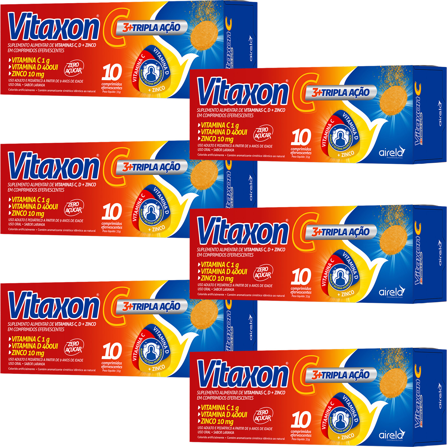 Vitaxon C 3+ Tripla Ação com 10 comprimidos efervescentes da Airela é um suplemento alimentar formulado para oferecer três benefícios principais: fortalecimento do sistema imunológico, ação antioxidante e suporte à saúde da pele.
